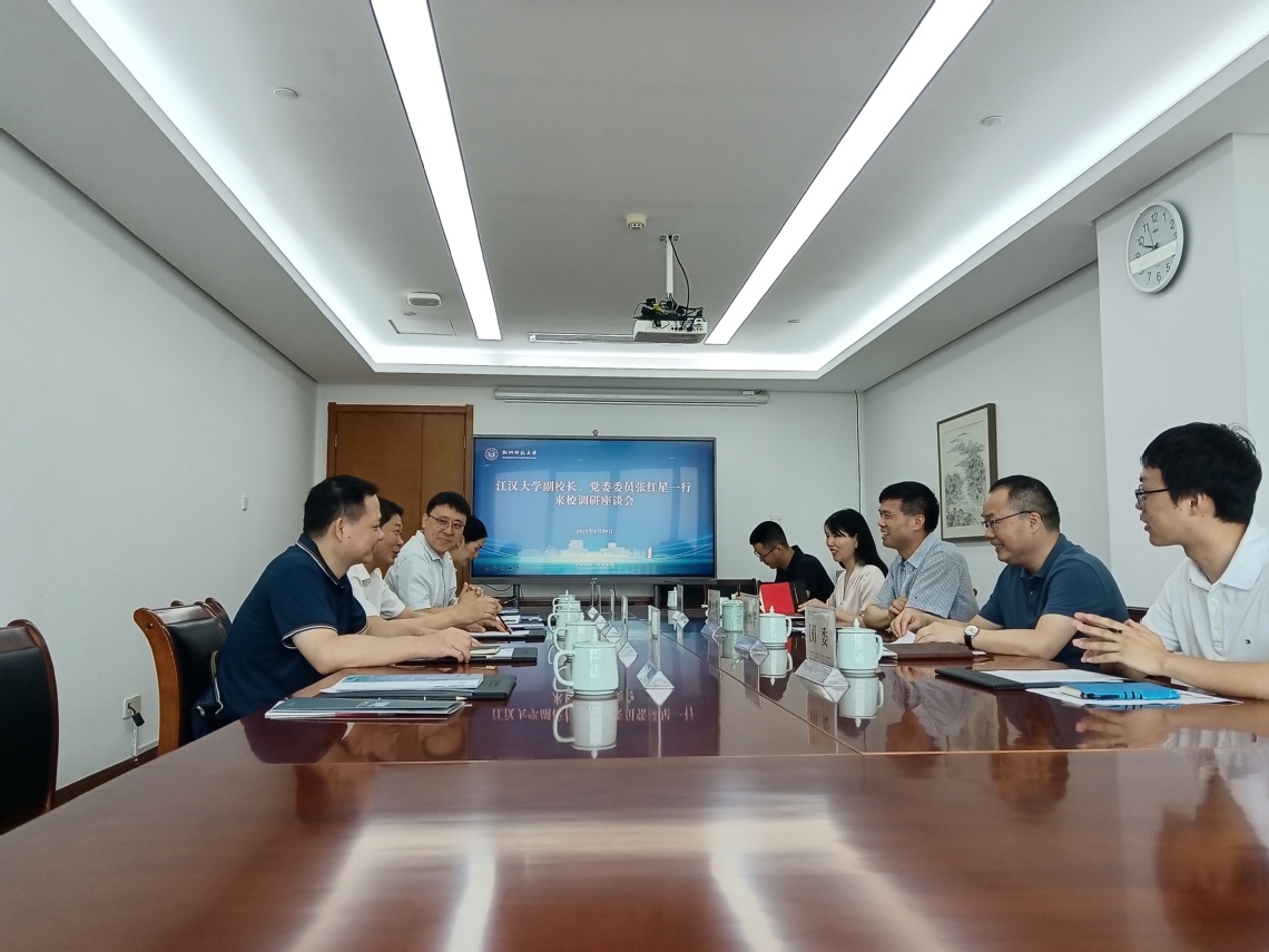 在调研座谈会上,杭州师范大学黄兆信副校长首先对江汉大学一行的到来表示热烈欢迎,并简要介绍了杭州师范大学的总体情况、发展历程、办学特色以及近年来在党的建设、学科建设、创新创业等方面的主要工作思路及成绩。黄兆信表示,杭师大和江大同为城市大学,希望两校能够深入开展合作,加强干部交流,共同探索城市大学打造特色,服务地方的新路径。