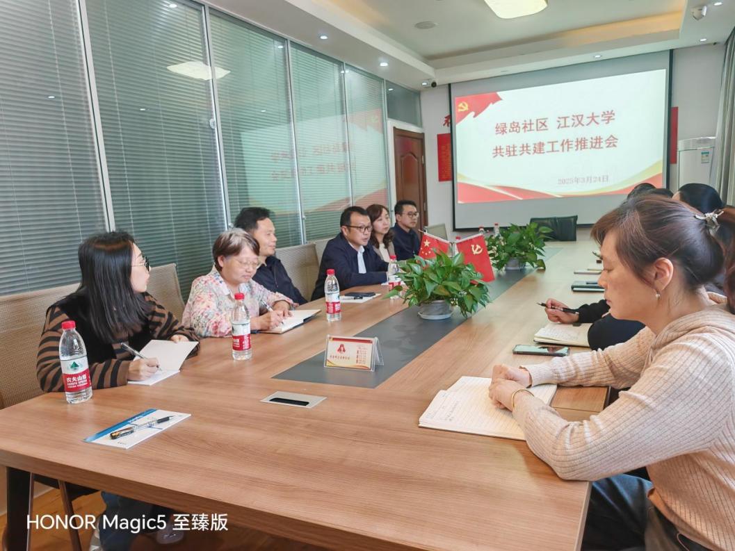3月24日,法学院、人文学院、外国语学院、人工智能学院与绿岛社区召开共驻共建工作协商会。