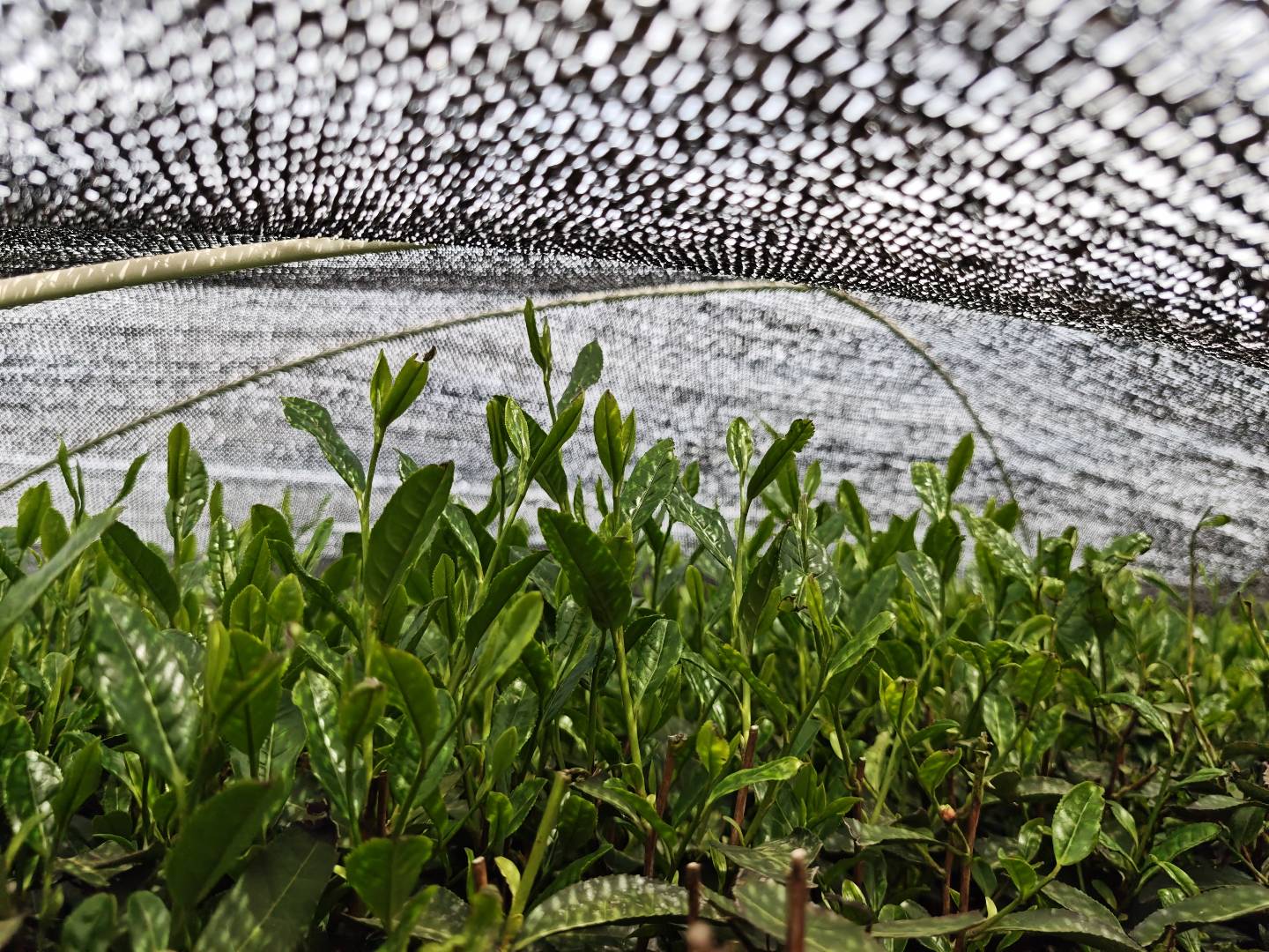 正在进行遮阳处理的茶树