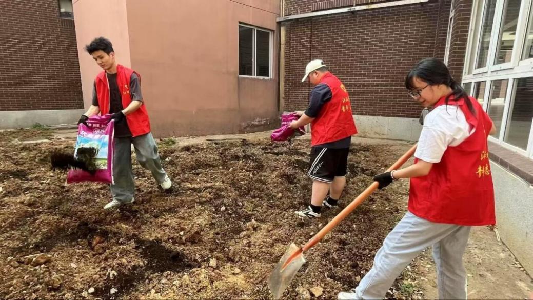 美术学院开展“美育+公益”综合实践,组织草坪播种、绿植养护等生态志愿服务,同步开展社区义务讲解,利用专业技能开展志愿服务。