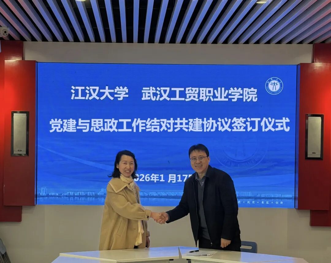 为全面贯彻新时代党的建设总要求、落实省教育工委有关文件精神,2026年1月17日,江汉大学与武汉工贸职业学院党建与思政工作结对共建协议签订仪式成功举行。